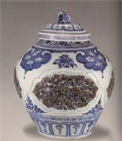 圖片名稱: 景德鎮(zhèn)窯青花釉里紅開光鏤花罐