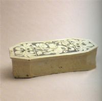 圖片名稱: 磁州窯白釉剔粉持荷娃娃紋八角形枕