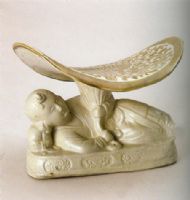 圖片名稱: 定窯白釉童子擎荷赭彩雕劃牡丹紋枕
