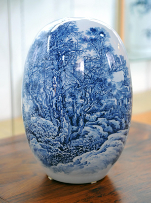 28日,“景德鎮(zhèn)陶瓷藝術(shù)家劉敏青花瓷作品展”在南開區(qū)迎水道天津民間藝術(shù)展示中心展出。