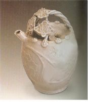圖片名稱: 白釉雕牡丹花提梁注壺