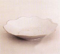 口沿為十瓣花口,坦腹,淺圈足,外底草刻一(官)字。通體輕薄堅密。同一墓中這種形制的器物為成套組合。共出有十件。在浙江錢氏家族墓中,出有一批品種各異帶(官)與(新官)字款的精美白瓷。