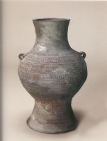 此壺侈口,長頸,圈足較高,腹部飾弦紋四組,其間加飾篦點紋。整個造型簡單樸素,給人以穩(wěn)重感