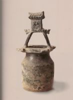 井頸微束,上陰刻四道弦紋,井身渾圓。井垣平面呈[井]字形,上附井架,略呈[大]字形,其兩柱立於井兩側,中部兩端形象地塑成龍首,張口作噴水狀,上部似一墻垣,中透兩孔,可穿系井繩,頂部遮雨為硬山式頂。泥質紅陶,通體施綠釉。