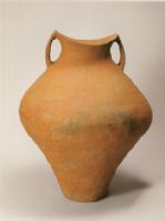 馬鞍形口、長(zhǎng)頸中部?jī)?nèi)凹,溜肩、深腹圓鼓,口沿離起處與肩部有對(duì)稱雙耳。具有明顯的地方特征。