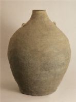 泥質(zhì)灰陶,小口斜頸、溜肩、深腹圓鼓、平底,頸部兩側(cè)有對稱雙系耳,通體滿拍印密集的米字紋裝飾,形體莊重,裝飾樸素.
