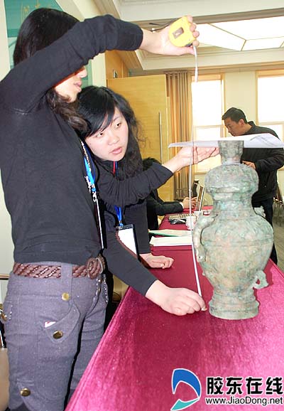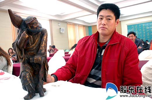 家住牟平區(qū)的衛(wèi)先生是一名收藏愛(ài)好者,他告訴記者,自己這次帶來(lái)了一尊木制鑲金“鐵拐李”,請(qǐng)北京來(lái)的專家給鑒定一下。衛(wèi)先生的這件寶貝是“八仙過(guò)海”中的一個(gè),是祖上留下來(lái)的,請(qǐng)好些人鑒定過(guò),都說(shuō)是真的。得知此次來(lái)煙臺(tái)的專家曾在CCTV-2《鑒寶》節(jié)目擔(dān)任過(guò)專家評(píng)委,就決定花200塊錢報(bào)名再來(lái)看看。一位不愿意透露姓名的市民帶來(lái)了一件青銅器,專家現(xiàn)場(chǎng)鑒定之后,給出的估價(jià)是12萬(wàn)元人民幣。這位市民喜出望外,隨即花了1500元,為他的這件寶貝辦理了鑒寶證書(shū)。