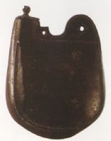 胎呈紅色。扁圓形腹,橢圓形管式口,帶蓋。此器造型規(guī)整,施釉均勻,醬釉光亮均勻,是遼代三彩器中的佳作。
