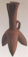 細質(zhì)紅陶。直口,圓唇,口處有管狀流,輿口相隔,細長頸,腹部高開襠,下設三長袋足。頸和袋足之間飾有帶狀橋形鋬手。