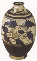 圖片名稱: 磁州窰白釉繪黑花四系瓶