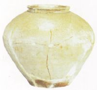 敝口,短頸,豐肩,鼓腹,平底。通體飾席紋。施青釉呈青黃色。此器胎堅(jiān)致厚重,體碩大,為西漢青瓷中之佳作。徑修補(bǔ)復(fù)原。