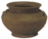 敞口,束頸,扁圓腹,圈足。肩有三侗雙泥條橫絮。腹身飾弦紋數(shù)道;野咨ンw,胎壁厚薄均勻。西周原始青瓷瓿多仿青銅瓿的造型,東漢後,瓷瓿已不再生產(chǎn)。瓿為古代聹水、盛酒的器皿。