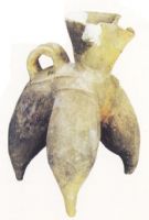 泥質灰陶。頸下置三個袋狀足,足的上部飾凸棱,飾凸棱是該文化的特點;姨蒸k是該遺址出土的典型器。