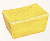 枕呈長方形,枕面中間內(nèi)凹,印飾一對相像的蜜蜂,呈團花狀。施釉,呈黃綠色,釉面勻凈光亮。