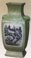 圖片名稱: 冬青地青花山水人物扁方瓶