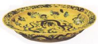 圖片名稱: 黃地素三彩刻龍紋大盤