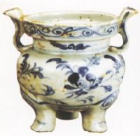 此爐為明代典型的焚香爐造型,以折枝果為主題紋,有明空白期青花凰格。其胎質(zhì)潔白,釉色明亮。