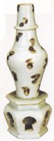 用褐彩裝飾瓷器在我國(guó)出現(xiàn)較早,南京出土有三國(guó)時(shí)褐彩壺。雨晉南朝褐彩流行,宋元晴偶有採(cǎi)用。此瓶蓮座褐彩造型端正,釉彩美觀,屬典型元代製品,在元瓷中常見。成封出土,惟缺紀(jì)年資料。