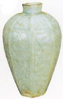 此瓶設(shè)計修長,通體呈八棱狀,滿印折枝花卉紋,加上潤澤如玉的青白釉,給人一種玲瓏剔透的美感,在青白瓷中少見。多棱瓷器,是元瓷造型特徵之一。