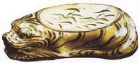 圖片名稱: 磁州窰黃褐釉繪黑花蘆雁圖虎枕