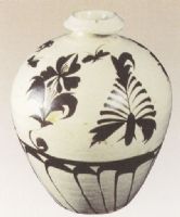 圖片名稱: 磁州窰白地黑花花卉紋罐