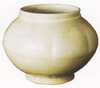 直口,短頸,瓜棱狀腹,圈足。胎體輕薄,呈灰白色。器內(nèi)外施釉,外壁施釉不到底。釉質(zhì)細膩,極富光澤,有細碎的明片。此罐造型穩(wěn)重大方,有宋瓷特有的 秀美,為較典型的作品