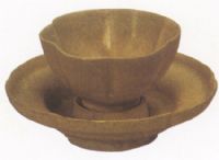 盞呈花瓣形敞口,弧壁,圈足。托形圓似盤,花邊捲口,盤中心有作為承托的凸起的圓圈(即托口)以承盞。通體青白釉泛黃,並有細(xì)碎開片。唐宋時(shí)期飲茶之風(fēng)大盛,南北瓷窯兢相生產(chǎn)各類茶具。