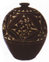 小口,折沿,短頭,雙肩,鼓腹,圓足。施黑釉,採用剔花的 裝飾手法,肩部為變形菊辦紋,腹部為卷業(yè)紋。此器造型渾圓質(zhì)樸,紋飾線條酣暢,為金代剔花器的 代表作。