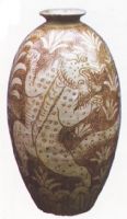 圖片名稱: 登封窰珍珠地刻虎紋橄欖式瓶