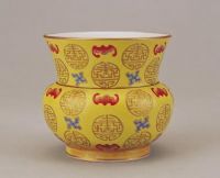 圖片名稱(chēng): 黃地紅蝠金彩團(tuán)“壽”字渣斗