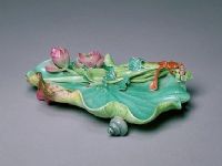 圖片名稱: 粉彩雕鑲荷葉香櫞盤