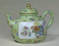圖片名稱: 綠地粉彩開光菊石紋茶壺