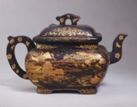圖片名稱: 紫砂黑漆描金彩繪方壺