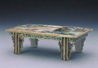此件長(zhǎng)方幾為康熙素三彩瓷器的珍貴器物,此種器形在康熙朝較為少見,當(dāng)為文房用具。