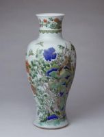 此瓶造型端莊古樸,構(gòu)圖疏密有致,紋飾畫工精細(xì),用色考究,所繪內(nèi)容寓意吉祥。