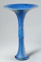 此觚造型仿古銅器,裝飾簡(jiǎn)潔,釉呈青翠色,釉面玻璃質(zhì)感強(qiáng),是一件精美的陳設(shè)瓷。