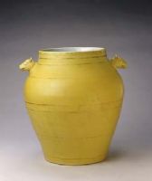 低溫黃釉器創(chuàng)燒于明初景德鎮(zhèn)官窯,以后各朝多有制作,但以弘治朝產(chǎn)品最受人稱道,其燒制水平達(dá)到了歷史上低溫黃釉的最高水平。因當(dāng)時(shí)以澆釉法施釉,故有“澆黃”之稱,又因其呈色嬌嫩,故又有“嬌黃”的美譽(yù)。