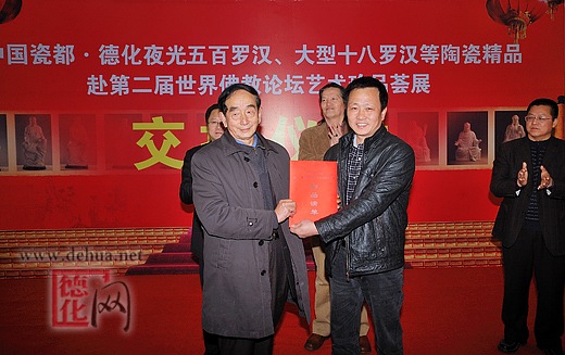 3月4日,德化縣陶瓷博物館隆重舉行中國(guó)瓷都·德化陶瓷大型雕塑珍品夜光500羅漢、大型18羅漢盛駕前行江蘇無錫靈山梵宮參加第二屆世界佛教論壇吉日起程儀式。中國(guó)工藝美術(shù)學(xué)會(huì)高度重視本次啟程儀式,副秘書長(zhǎng)王永慶先生百忙之中,蒞臨德化參加指導(dǎo)。