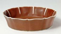 洗通體作十瓣菱花式,敞口,淺身,腹壁近直,平底。通體施鮮紅釉,釉面勻凈,色鮮艷。口沿與腹壁花瓣出筋處顯露潔白的胎色,與器身的紅釉相映生輝。底施白釉,無款。