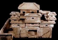莊園由田園和宅第兩部分組成。宅第為三進(jìn)院落,布有懸山頂、四阿頂建筑,高低參差,錯(cuò)落有致,內(nèi)設(shè)伎樂(lè)俑、仆侍俑及生活器皿一應(yīng)俱全。宅旁連以水旱農(nóng)田、水井、溝洫等,前墻上繪有主仆生活圖(已脫彩)。