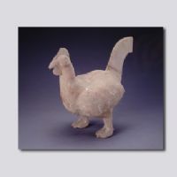 首都博物館藏。泥質(zhì)紅陶。明器。雞首高昂,雞冠沖天,身體肥碩,尾巴翹起,兩側(cè)翅膀劃有羽毛。