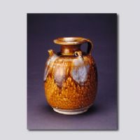 圖片名稱: 黃道窯黃釉藍斑席紋執(zhí)壺