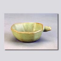 首都博物館藏。八棱形。敞口,斜腹,平底無釉?谘匾粋扔幸积埵仔涡”韧馐┣嘤,釉面光潤,呈青綠色,玻璃質不強,有細密開片。胎質細膩,露胎處泛黃。