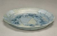 說 明: 盤較淺,化式口,白釉泛青。胎替輕薄堅硬,青花色澤淡雅。