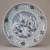 圖片名稱(chēng): 景德鎮(zhèn)窯青花蓮池鴛鴦垂柳紋盤(pán)