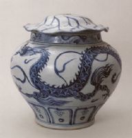 圖片名稱: 景德鎮(zhèn)窯青花龍紋荷葉蓋罐