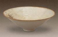 說 明: 半斗笠,敞口,斜壁,淺圈足.通體施卵白釉,釉色光潤,胎薄質(zhì)精.