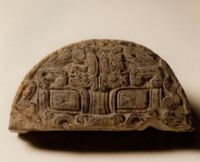 說 明: 泥質灰陶。半圓形。制作精制,形象生動。