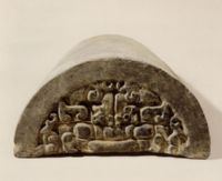 說 明: 泥質(zhì)灰陶。筒瓦為半圓筒形,瓦的前端有半圓形瓦當。