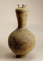說(shuō) 明: 泥質(zhì)灰陶。口微外侈,細(xì)長(zhǎng)頸內(nèi)收,深腹圓鼓,圈足。